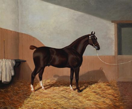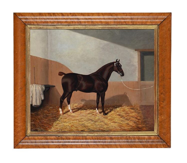 λ ALBERT CLARK (1843-1928) AND JAMES CLARK (1863 - 1955) HORSE IN A STABLE Oil on canvas Signed and dated '1899' (lower left) 52 x 62cm (20¼ x 24¼ in.) Condition Report: The canvas has not been lined and there are three visible patches verso which correspond with areas of repair to the upper centre and upper left quadrant recto. Stretcher marks partially visible. Light craquelure throughout, with some risk of lifting/flaking, particularly along the upper stretcher edge. Light rubbing and abrasions to the framing edges. Inspection under UV light reveals some light, scattered retouching throughout, together with more extensive over-paint to the aforementioned areas of repair.Condition Report Disclaimer