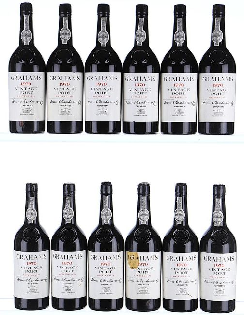 ß 1970 Graham's, Vintage Port OWC 12 x 75cl IN BOND 1 label stained, 5 labels lightly bin-soiled. Condition Report: Condition Report Disclaimer