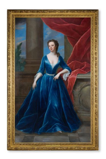 ‡ ADRIANA (FORMERLY KNOWN AS MARIA) VERELST (BRITISH CIRCA 1683-1769) PORTRAIT OF SARAH CHURCHILL, DUCHESS OF MARLBOROUGH (1660-1744), FULL-LENGTH, HER LEFT ARM RESTING ON A PILLAR, BEFORE A COLUMN Oil on canvas 228.5 x 142.2cm (89¾ x 55 in.) Provenance: Gennaro Maione (1894-1965) and Gertrude A. Maione (née Jennings, b.1890) and by descent to Patricia Gertrude Maione (1921-2001); London, Christie's, 10 December 1965, lot 72 (as by Kneller) where purchased by Mr. Box. Private collection, U.K.. Philip Mould, London, September 2010 where acquired by the present owner.  The present portrait of the politician and courtier Sarah Churchill, previously attributed to Kneller is by Adriana Verelst. Verelst, traditionally and successively been erroneously identified as Maria, was the only surviving daughter of Herman Verelst (a portrait painter) and Cecilia Fend, originally from Venice, the exact date and place of her birth uncertain. She was already a successful artist when she married Richard Baker, a widower of St Andrew's Holborn, on 6 June 1717 at St Michael Queenhithe, however within four months, the marriage had broken down. Baker claimed in court that all of Verelst's property was rightfully his and that she had sold a substantial amount of goods (including pictures) to a local dealer on or about 29 August 1717. He appealed to the court for restitution of his property or compensation. The couple separated and a judgement of 25 November 1718 awarded her an annuity of £40 per annum for life for 'separate maintenance and in lieu and satisfaction of any Demand Right or Title' that she might later claim. Continue reading Condition Report: The canvas has been relined and examination under UV light reveals a possible repaired tear running diagonally in the upper right corner and a vertical repaired tear in the curtain upper left. There is some older retouching in the sitter's face and decolletage and to her hands and other scattered spots of restoration in the background. There is some possible strengthening of the highlights in the sitter's dress and hair. The paint surface in the marbled floor is a little worn and thin, particularly in the lower right quadrant. Condition Report Disclaimer