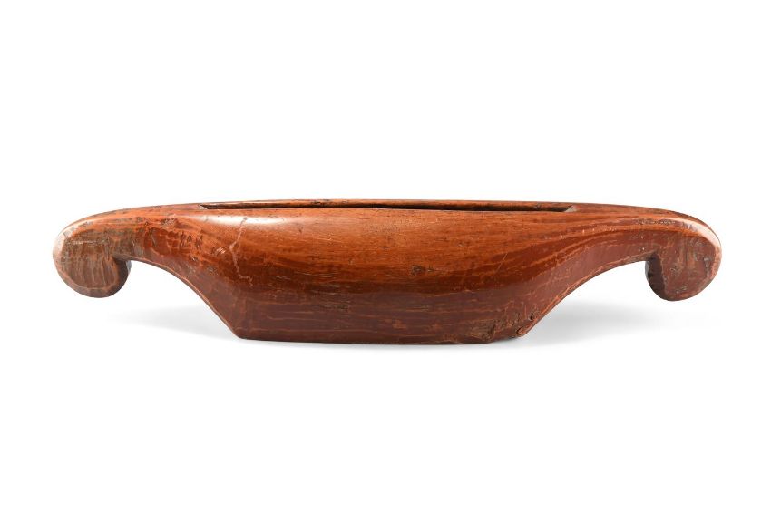 Of typical shaped oval form, each end tapering to a scroll