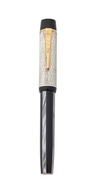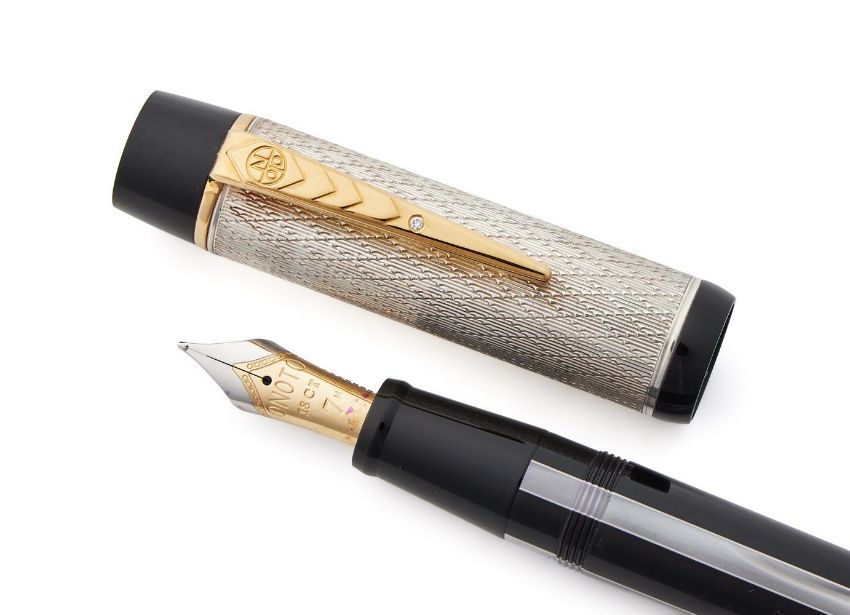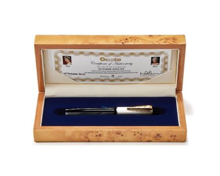 ONOTO, DIAMOND JUBILEE A LIMITED EDITION FOUNTAIN PEN, NO. 8/60, 2012 Cap and Barrel: Silver engine turned cap with a diamond set gilt clip, tri-colour acrylic barrel Nib and Filling System: Two tone gold coloured nib stamped 18CT, cartridge filling system, cartridge convertor, uninked Accessories: Onoto box, certificate of authenticity, care guides, polishing cloth and outer card packaging