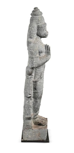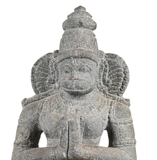 An Indian granite figure of Hanuman, Tamil Nadu, 17th or 18th century, 91cm highCompare with a similar figure in the British Museum, Registration number 1880.298Provenance:An English Country House Collection Condition Report: generally in very presentable condition with not major damage with just some chips to the extremities and wear overall please see additional images for a visual reference to condition Condition Report Disclaimer