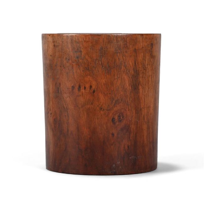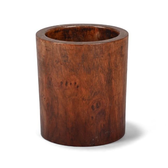 A Chinese huanghuali brush pot, Qing, 14cm high清 黃花梨筆筒 Condition Report: wear to the surface commensurate with age and with minor cracks but generally in very solid condition Condition Report Disclaimer