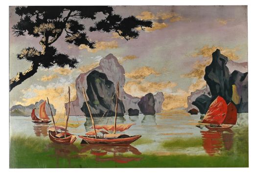 Two contemporary Vietnamese lacquer paintings, 20th century, 50cm x 35cm Condition Report: generally in very presentable condition with minor chips to edges and a few chips to lacquer and scathes verso Condition Report Disclaimer