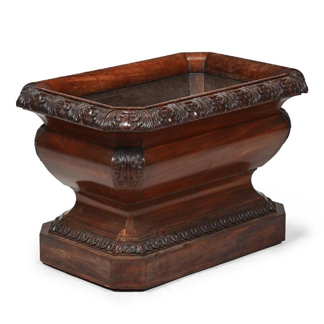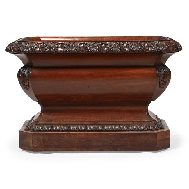A GEORGE IV CARVED MAHOGANY WINE COOLER ATTRIBUTED TO GILLOWS, CIRCA 1825 With recessed castors to the plinth base 60cm high, 92cm wide, 63cm deep
