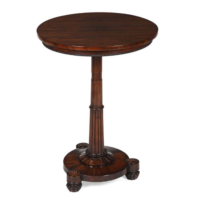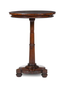 Y A GEORGE IV ROSEWOOD OCCASIONAL TABLE CIRCA 1825 71cm high, 52cm diameter Condition Report: Overall there are some scratches, marks, chips, cracks and abrasions consistent with age and use. Some old repairs. Please see all the additional condition report photographs through the link on the condition report email as a visual reference of condition. Condition Report Disclaimer