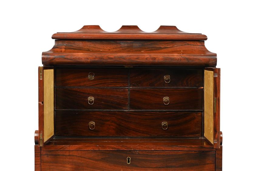 Y A RARE REGENCY ROSEWOOD COMPENDIUM TABLE DESK