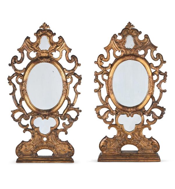 A MATCHED PAIR OF ITALIAN CARVED GILTWOOD MIRRORS