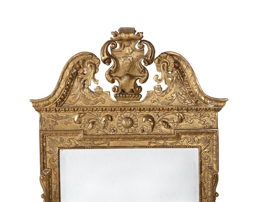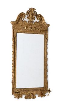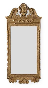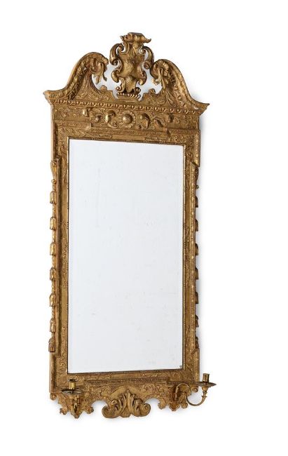 A LARGE GEORGE II CARVED GILTWOOD AND GESSO GIRANDOLE MIRROR CIRCA 1750 158cm high, 71.5cm wide, 23cm protuberance