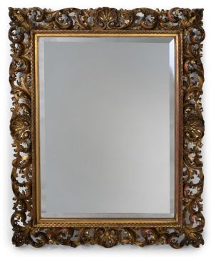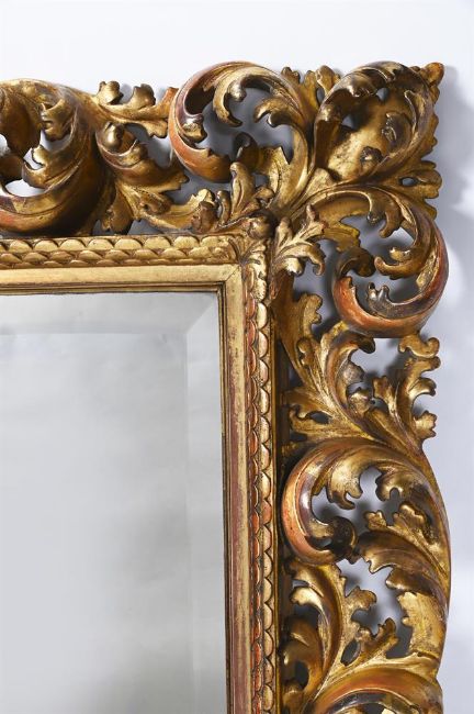 A LARGE ITALIAN CARVED GILTWOOD FOLIATE MIRROR 19TH CENTURY 152cm high, 120cm wide