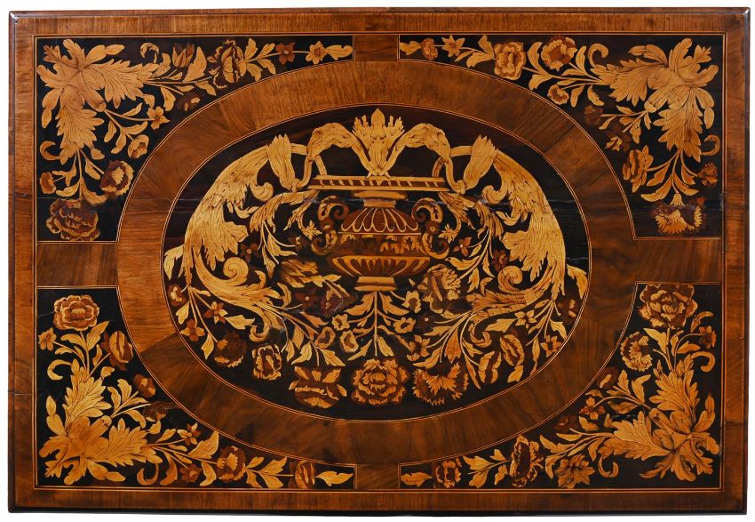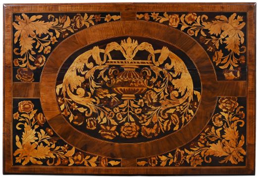 A WALNUT AND MARQUETRY SIDE TABLE CIRCA 1690 AND LATER 77cm high, 97cm wide, 65.5cm deep Please note, the description for this lot has been updated and differs from the printed catalogue, this should be dated as 1690 and later as the legs, stretcher and feet have been later replaced. Condition Report: Please note, the description for this lot has been updated and differs from the printed catalogue, this should be dated as 1690 and later as the legs, stretcher and feet have been later replaced.Marks, knocks, scratches and abrasions commensurate with age and use. Some old splits and chips. The top with some historic splits and veneer repairs, filler use has been applied in areas also to disguise, see images for extent. Some evidence of old worm to the top Some splits to drawer lining and later batons of timber applied to the front and back longest edges to secure drawer linings. The handles have age but are later associated, there are holes to the reverse of the drawer fronts to suggest where previous handles were fixed. The turned legs, feet and stretchers incorporate some period elements but are primarily later turned and associated. Please see all additional images as a visual reference to this report. Condition Report Disclaimer