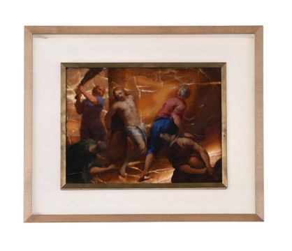 The composition of the present lot is based on a painting of the same subject by Palma Giovane, recorded by a print dated 1594, by Aegidius Sadeler II (The Illustrated Bartsch, 72, No. 46). It is possible that Felice painted the present picture in 1596, when Sadeler journeyed to Verona. During the same year Felice painted an altarpiece of the same subject in the church of the Madonna di Campagna, Verona.