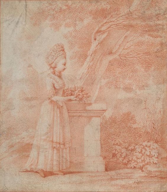 CIRCLE OF LOUIS CARROGIS, CALLED CARMONTELLE (FRENCH 1717-1806) PORTRAIT OF A LADY WITH A BOUQUET OF FLOWERS Red pencil on paper 25 x 21cm (9¾ x 8¼ in.)