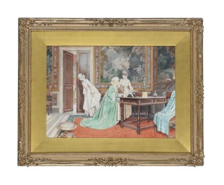 G** GUIDI (ITALIAN 19TH/20TH CENTURY) EAVESDROPPERS Watercolour Signed, inscribed and indistinctly dated 'ROMA 191[?]' (lower right) 43 x 59cm (16¾ x 23 in.)