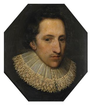 CIRCLE OF CORNELIS JOHNSON VAN CEULEN THE ELDER (DUTCH 1593-1661) PORTRAIT OF A MAN WITH A WHITE RUFF, SAID TO BE CHARLES I Oil on panel, octagonal Inscribed 'AE [?] 1620' (verso) 38.5 x 33.5cm (15 x 13 in.) Condition Report: The panel appears to have been cut down to fit the frame and there are two small additions in the bottom left and right corner which are hidden under the frame. The impasto to the ruff is good. Some light surface dirt throughout, together with a very uneven and discoloured varnish, which is particularly noticeable to the sitter's face. Rubbing and abrasions to the framing edges. Superficial surface scratches throughout. Some spots of over-paint to the upper left corner are visible in a natural light. Inspection under UV light shows some scattered spots of retouching including to the face however a green cloudy masking varnish is likely concealing further overpaint. Condition Report Disclaimer