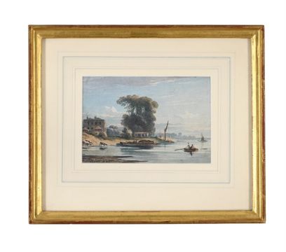 JOHN VARLEY (BRITISH 1778 - 1842) ON THE THAMES Watercolour Signed and dated '1822' (lower left) 9 x 13cm (3½ x 5 in.) Provenance: Bought from Thomas Agnews & Sons, Ltd, London, February 1982Exhibited: London, Thomas Agnews & Sons, No. 125