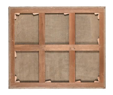 FLEMISH SCHOOL (17TH CENTURY) RIVER LANDSCAPE WITH LADY ON HORSEBACK AND GENTLEMAN WITH ASSISTANTS Oil on canvas 134.5 x 222.5cm (52¾ x 87½ in.) Unframed Condition Report: The canvas has been lined and is a little slack. Rubbing and abrasions to the framing edges. Surface scratches and scuffing throughout. Stretcher marks visible. Scattered craquelure and paint shrinkage throughout although generally the paint surface appears to be stable with only minor spots of loss. Some light surface dirt. Inspection under UV light reveals scattered retouching and in-filling throughout. Condition Report Disclaimer
