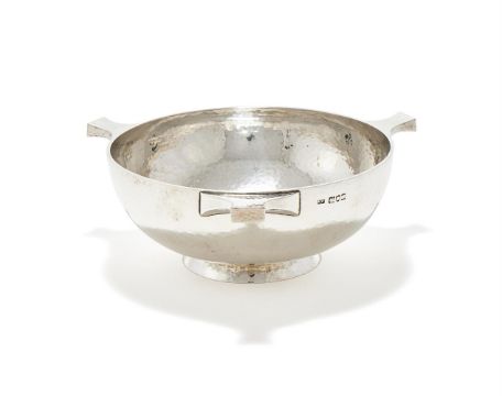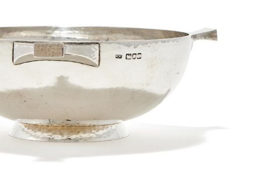 AN EDWARDIAN SILVER THREE HANDLED QUAICH MAPPIN & WEBB, LONDON 1906 With a hammered body and on a circular foot 20.5cm diameter 584g (18.75 oz) Provenance: An Anglo-French Collection Of Silver