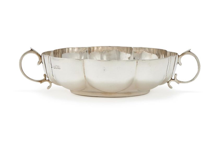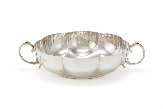 A VICTORIAN SILVER TWIN HANDLED LOBED CIRCULAR BOWL CHARLES STUART HARRIS, LONDON 1897 With twin scroll handles 21cm long 234g (7.5 oz)  Provenance: An Anglo-French Collection Of Silver Condition Report: Maker's mark partially obscured, the rest lightly rubbedSlightly wobblesNo engravingLight scratches and wear commensurate with age and useCondition Report Disclaimer