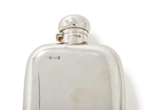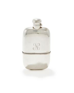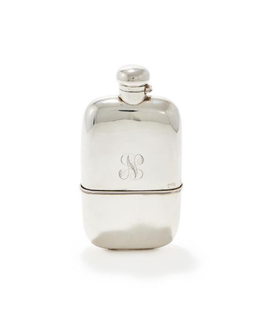 A VICTORIAN SILVER SPIRIT FLASK WALKER & HALL, SHEFFIELD 1897 With a pull off cup and engraved with an N 19cm high 363g (11.65 oz) Provenance: An Anglo-French Collection Of Silver Condition Report: Marks are lightly rubbedCup fits tightly to the bodyEngraving crispCover screws down tightly Light scratches and wear commensurate with age and useCondition Report Disclaimer