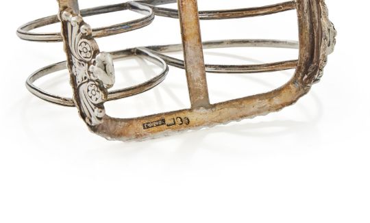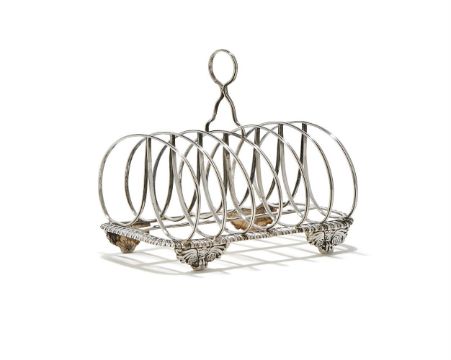 A GEORGE IV SILVER SIX DIVISION TOAST RACK THOMAS & JOHN SETTLE, SHEFFIELD 1821 With a loop handle, gadrooned base and on four winged feet 16.5cm long 250g (8 oz)