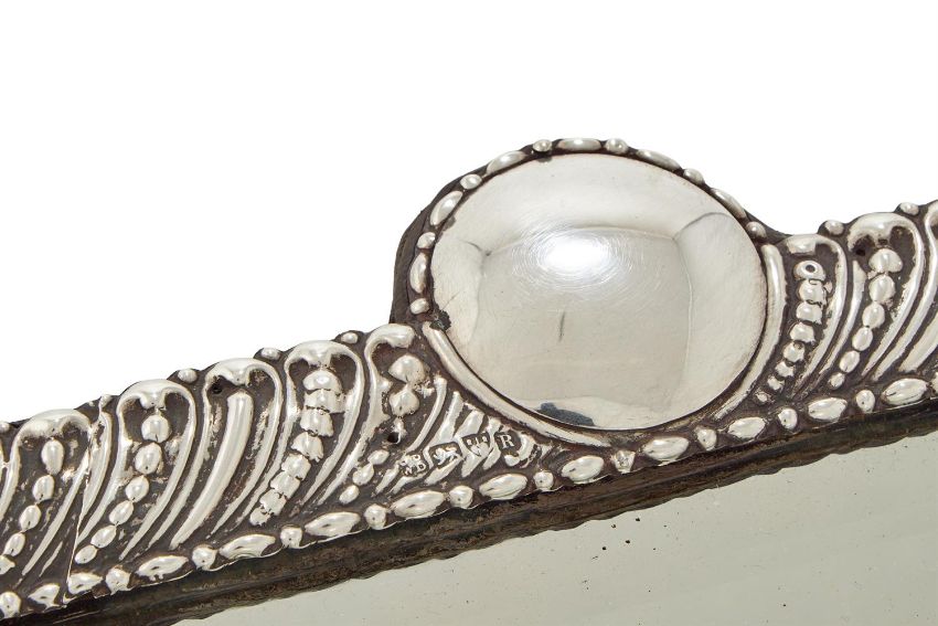 A VICTORIAN SILVER MOUNTED DRESSING TABLE MIRROR JAMES DEAKIN & SONS, CHESTER 1900 With a lobed and beaded border, and a circular vacant reserve 44.5cm highProvenance: An Anglo-French Collection Of Silver
