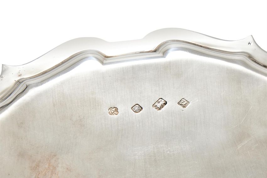 A SILVER SHAPED CIRCULAR WAITER ASPREY & CO. LTD., SHEFFIELD 1994 With a raised moulded border and on three pad feet 22.5cm diameter 331g (10.65 oz) Condition Report: Marks are well struck Stands wellNo engravingLight scratches and wear commensurate with age and useCondition Report Disclaimer