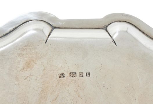 A SILVER SHAPED CIRCULAR SALVER D. & J. WELBY LTD.,, LONDON 1926 With a raised moulded border, engraved 'Presented by tenants, employees & well wishers to Miss Jean MacRae, younger daughter of Captain Duncan MacRae, D.L., of Ballimore Estate, on her marriage to Robert Carnegie, Esq., on the 20th July 1949', on three pad feet 31cm diameter 830g (26.7 oz)  Jean Margaret MacRae was the daughter of Captain John Duncan George MacRae and Lady Phyllis Hervey, daughter of Frederick Hervey, 4th Marquess of Bristol . She married Robert Andrew Carnegie (1926-1994) in 1949. Robert Carnegie became the13th Earl of Northesk when he inherited earldom in 1975. Provenance:Property From The Family of The Earls of Northesk