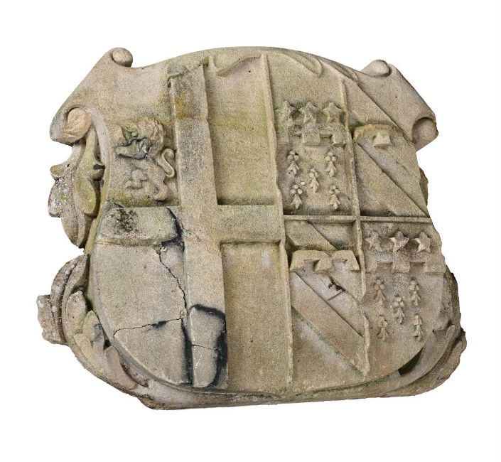 A LARGE CARVED STONE ARMORIAL PLAQUE