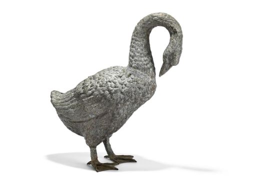 A BRONZE ANIMALIER MODEL OF A GOOSE LATE 20TH CENTURY 52.5cm high Condition Report: With only very mild wear, marks, knocks and scratches as per modern age, handling, use, and cleaning. Very light. Please see additional images for visual references to condition which form part of this condition report. All lots are available for inspection and Condition Reports are available on request. However, all lots are of an age and type which means that they may not be in perfect condition and should be viewed by prospective bidders; please refer to Condition 6 of the Conditions of Business for Buyers. This is particularly true for garden related items. All lots are offered for sale "as viewed" and subject to the applicable Conditions of Business for Buyer's condition, which are set out in the sale catalogue and are available on request.Condition Report Disclaimer