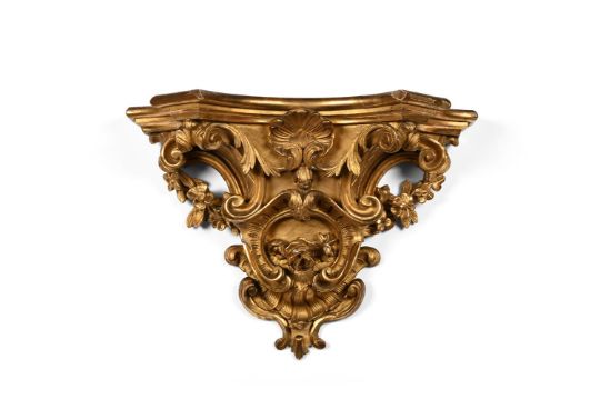 A PAIR OF CARVED GILTWOOD AND GESSO WALL BRACKETS IN LOUIS XV STYLE, SECOND HALF 19TH CENTURY 28cm high, 39cm wide, 19cm deep Condition Report: With wear, marks, knocks and scratches commensurate with age and useStructurally good, no apparent decorative elements missingAs mentioned some chips to the gesso and gildingSome possible old re-gildingOf good tone and hanging wellPlease see the extra images of this lot , that act as a visual reference to the condition report. Condition Report Disclaimer
