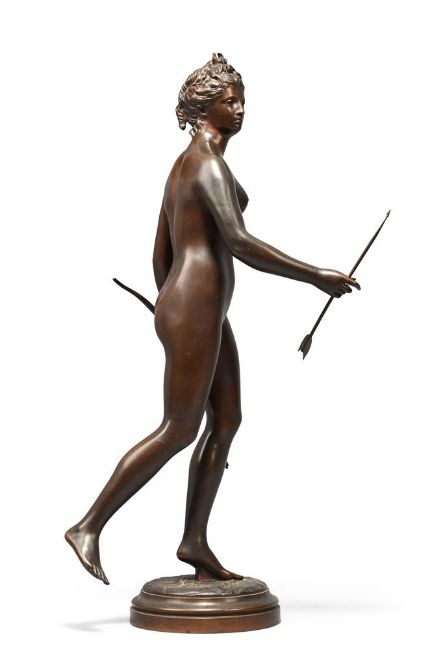 AFTER HOUDON, A BRONZE FIGURE OF DIANA THE HUNTRESS FRENCH, LATE 19TH CENTURY 61cm high
