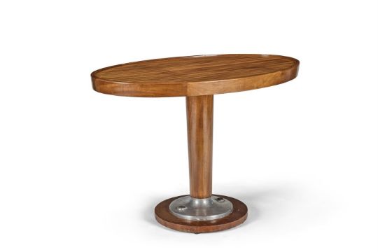 AN ALUMINIUM MOUNTED PALE MAHOGANY `YACHT' TABLE