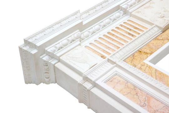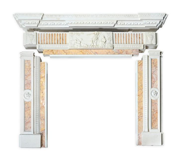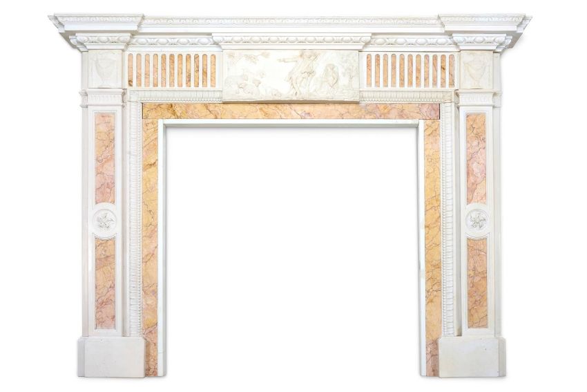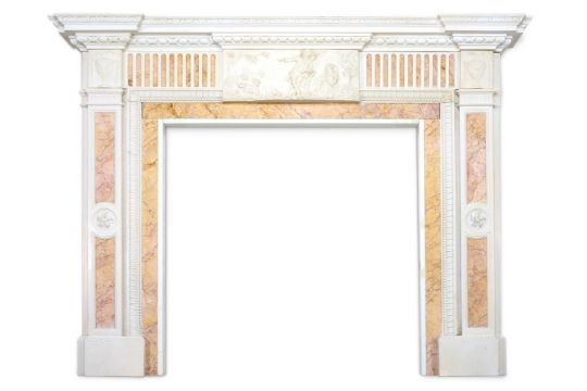 A WHITE AND YELLOW VEINED MARBLE AND SIMULATED MARBLE CHIMNEYPIECE