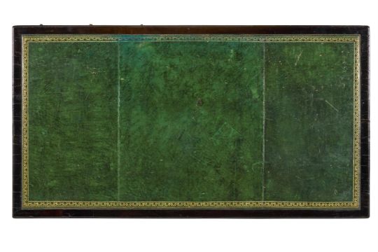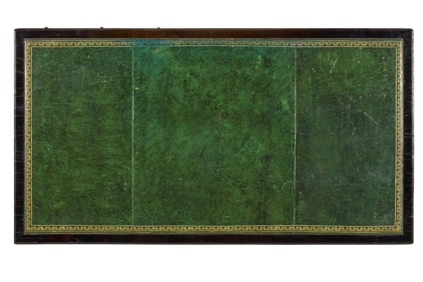 The gilt tooled green leather top is not original and is worn in places, scuffed and marked