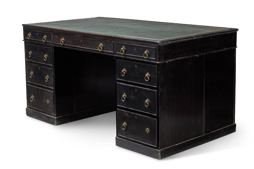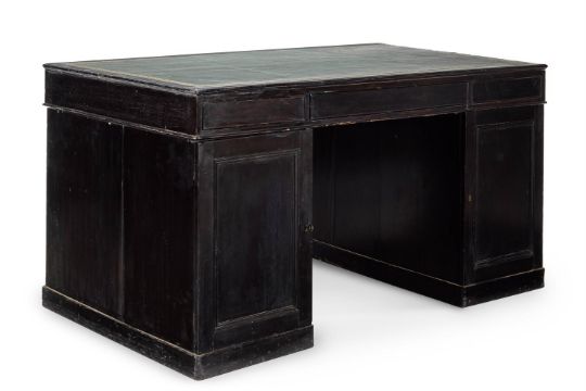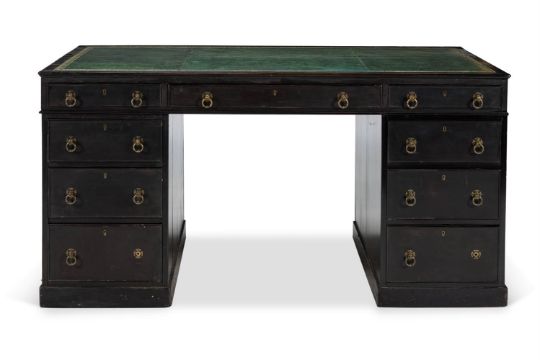 Y AN EBONY AND EBONISED PEDESTAL DESK