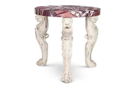 A SIMULATED MARBLE AND WHITE PAINTED CENTRE TABLE