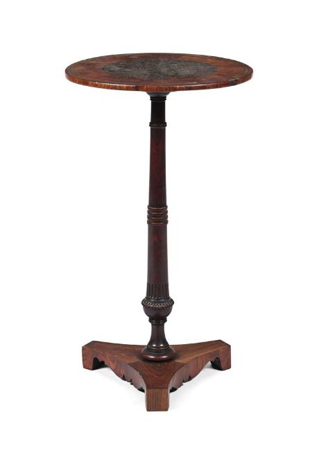 Y A ROSEWOOD AND BRASS MARQUETRY OCCASIONAL TABLE