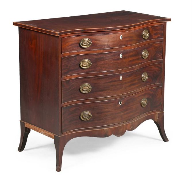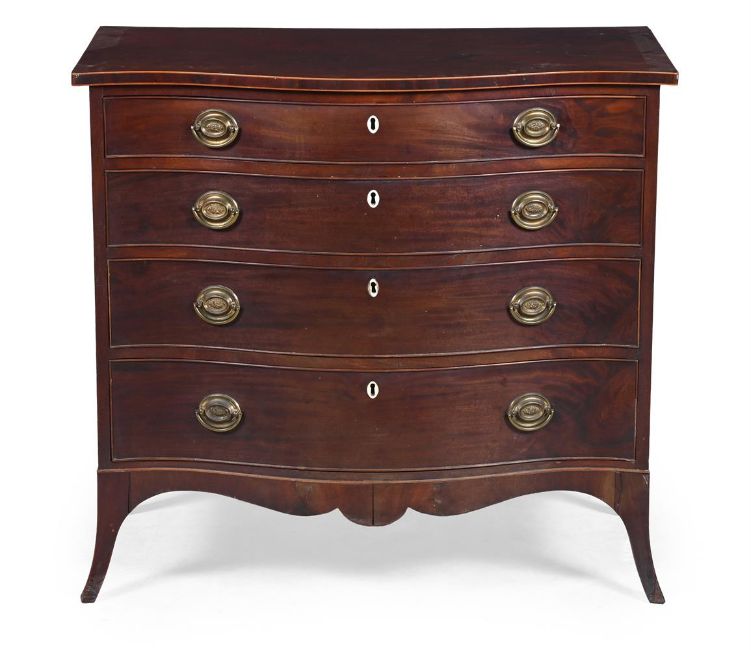 Y A GEORGE III MAHOGANY SERPENTINE FRONTED CHEST OF DRAWERS